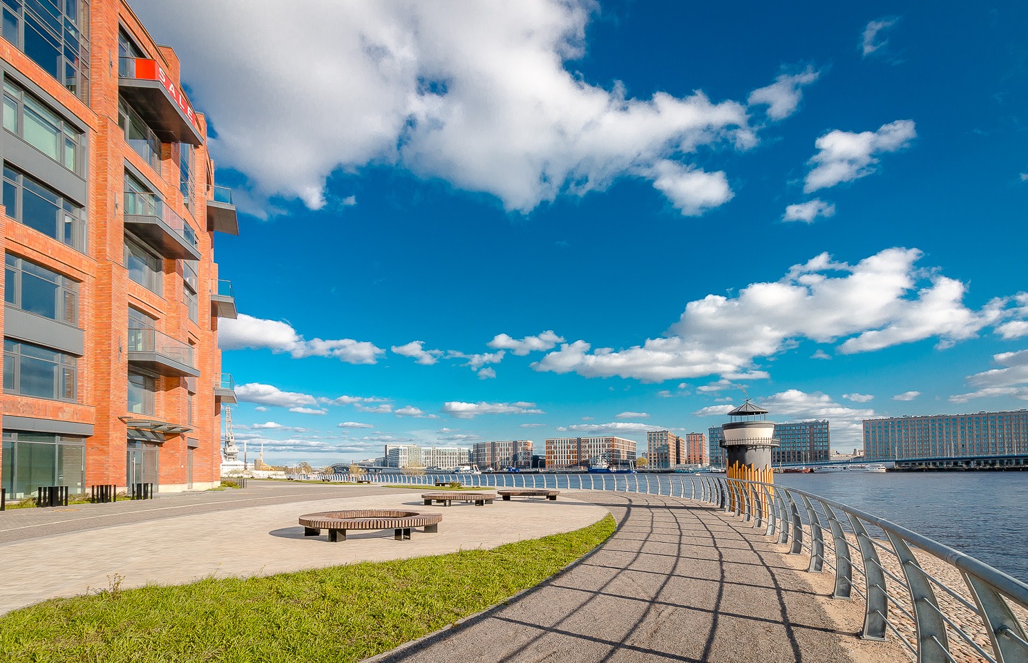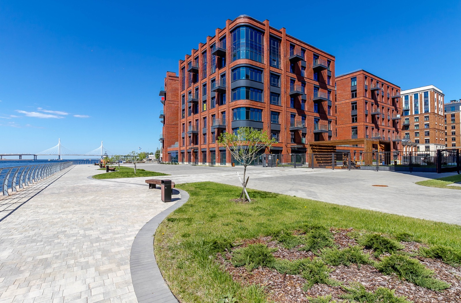 У комплекса своя благоустроенная прогулочная набережная с фантастическими видовыми характеристиками. Закрытая охраняемая внутренняя территория, подземный паркинг, развитая инфраструктура.