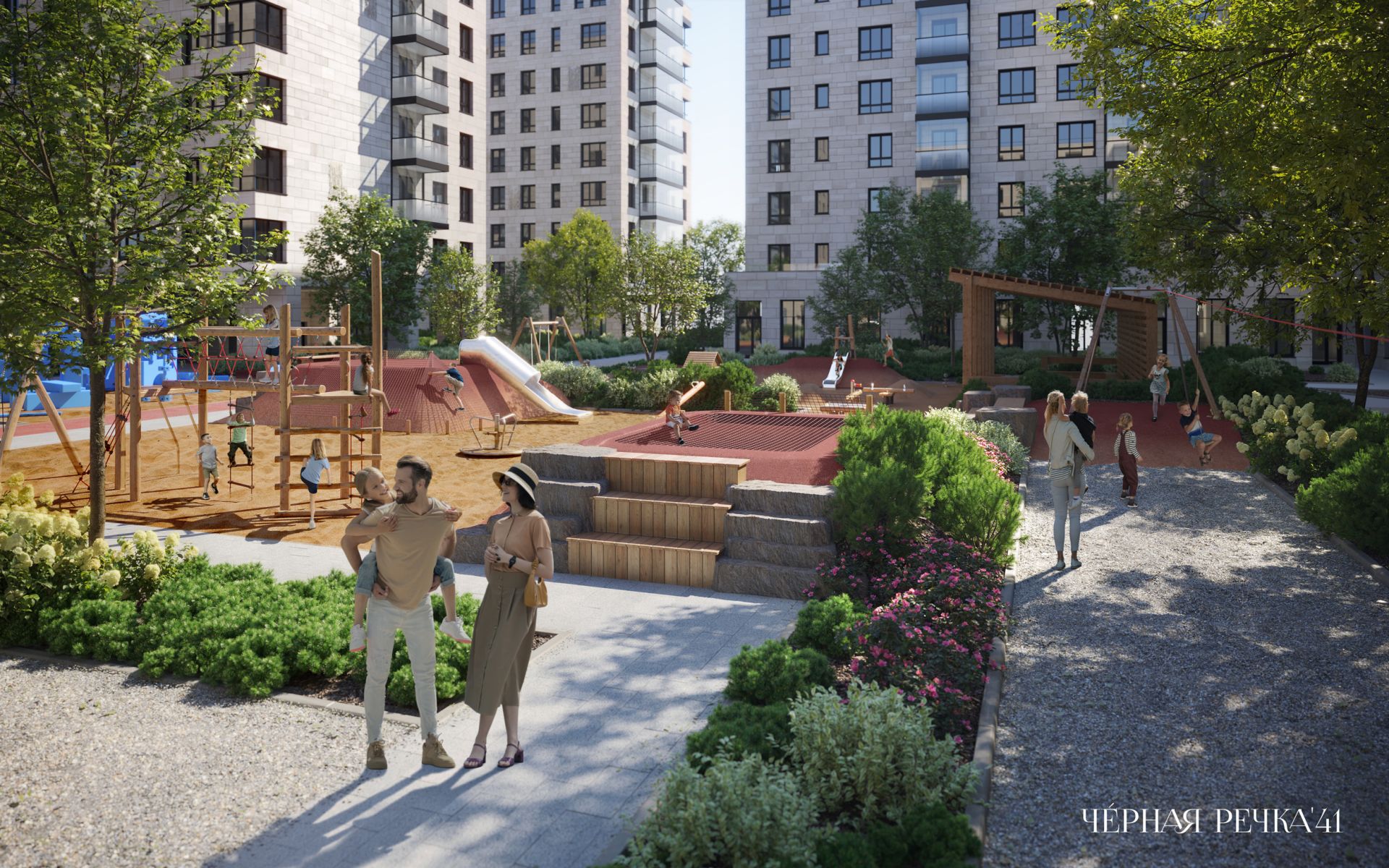 Комплекс создан компанией «Евгений Герасимов и партнеры», одной из ведущих архитектурных мастерских в России. Архитектурное решение дома вдохновлено образом скалы. Аналогия с каменной породой прослеживается в гранях фасадов и цветовом решении облицовочных материалов. Фасад украшают декоративные вставки из фибро-бетона, имитирующие окаменелости — отпечатки ископаемых рыб, водорослей и цветов. Жилой комплекс состоит из 11 секций, объединенных единым стилобатом и 1 секции, стоящей внутри участка.