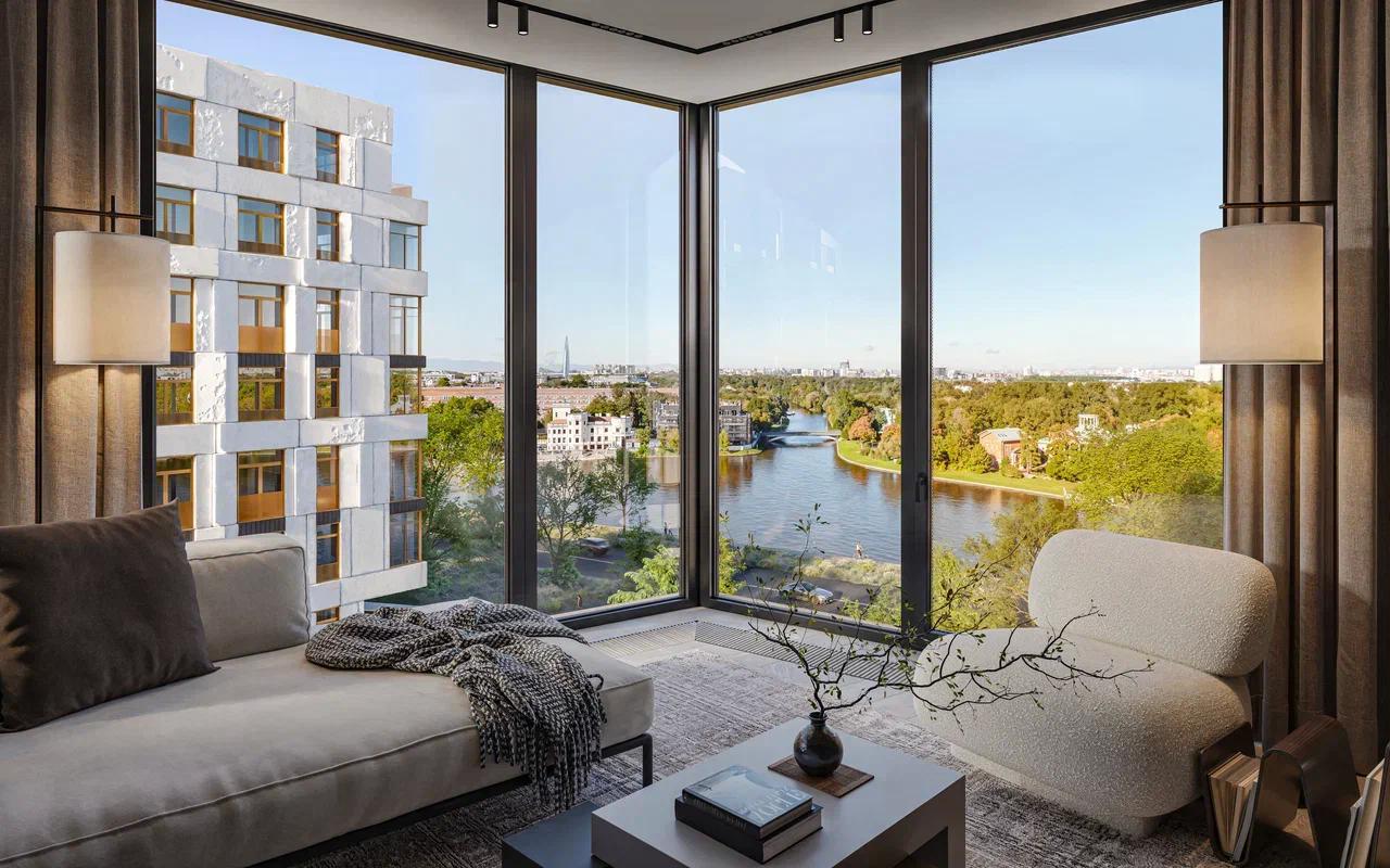 Жители дома ежедневно могут любоваться тихими водами Малой Невки, зеленью Крестовского острова, закатным солнцем и старинными особняками Каменного острова.