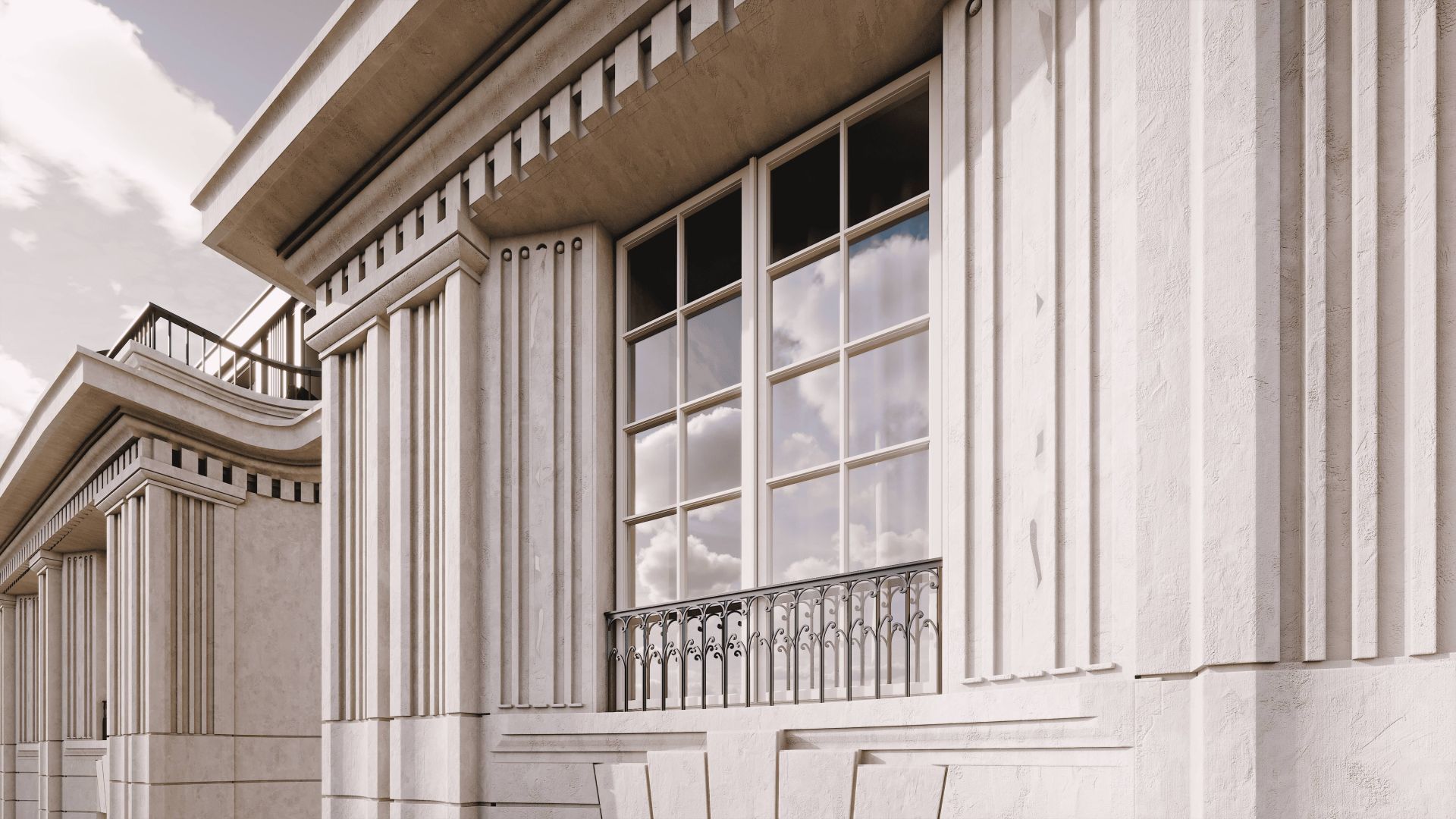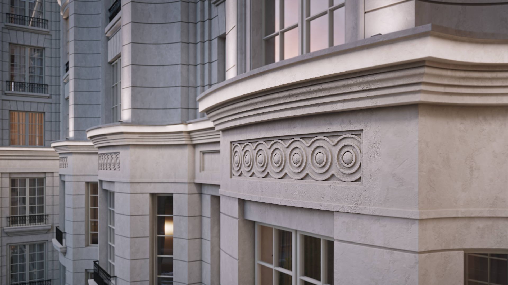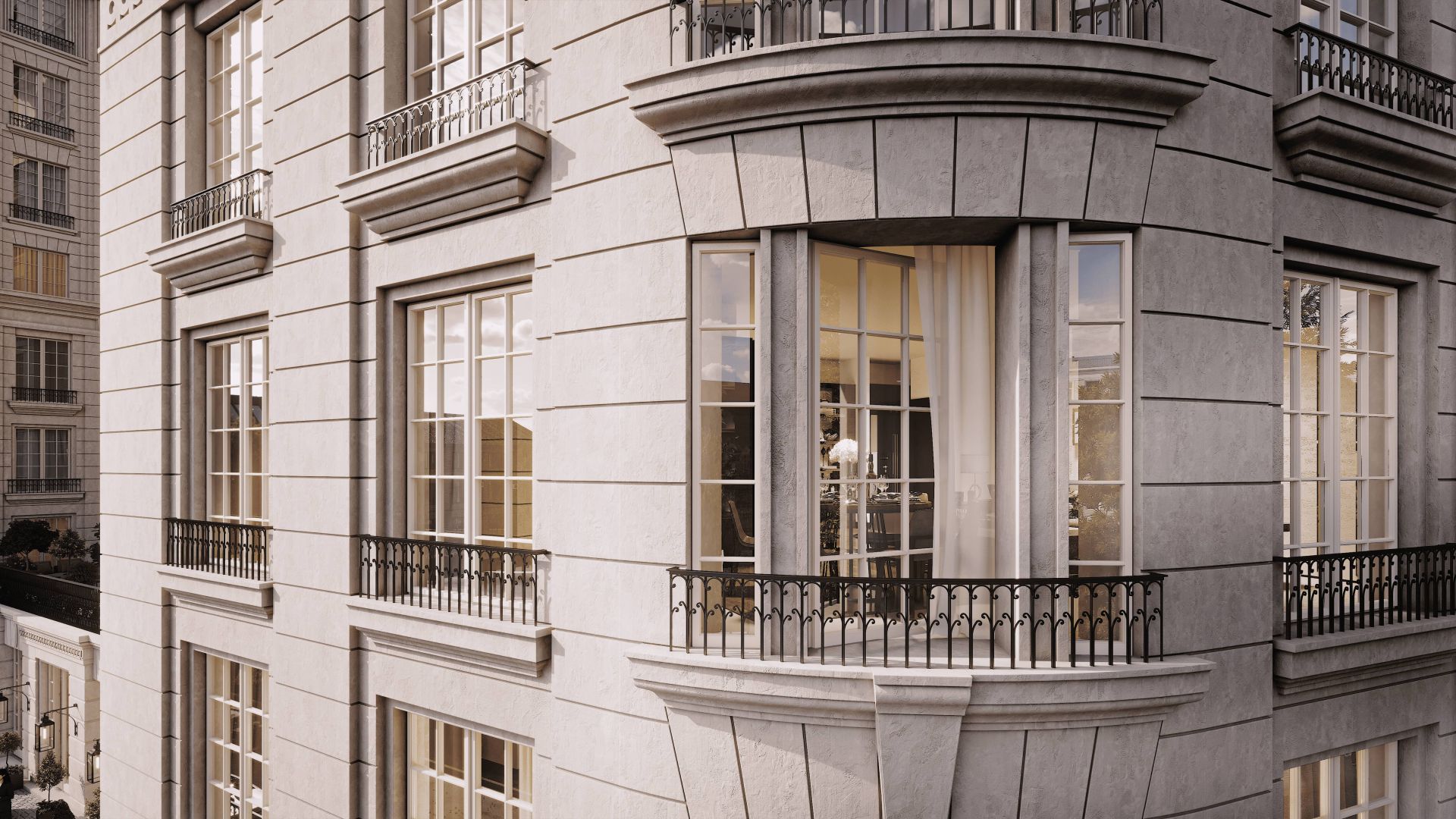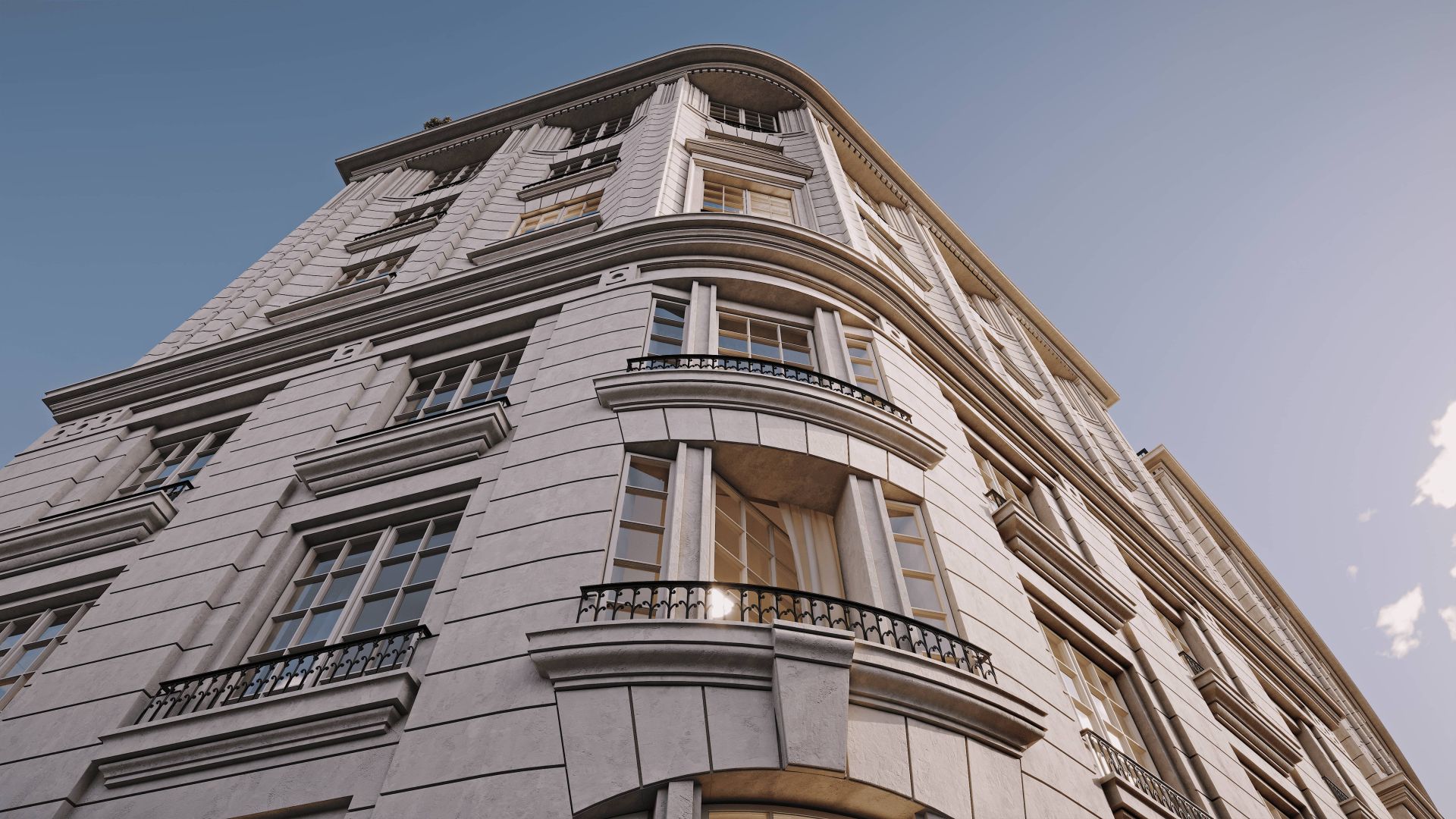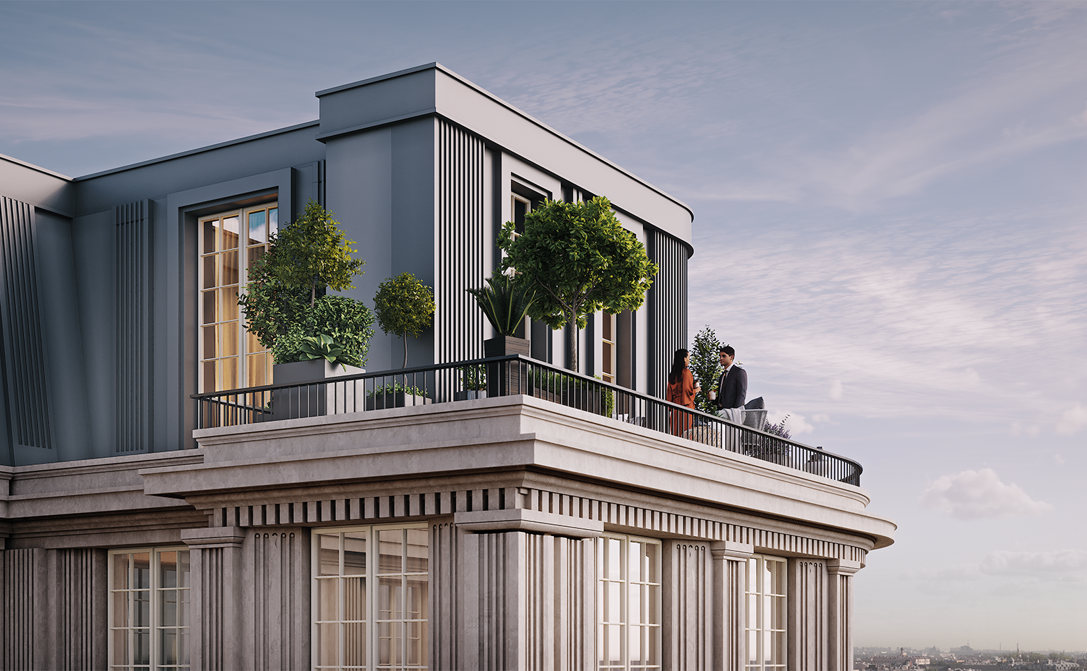 Комплекс гармонично вписывается в архитектурный ансамбль исторического центра Санкт‑Петербурга. Фасады здания выполнены в изысканном стиле XIX века с декоративными карнизами, элегантными рельефами и панорамным остеклением.