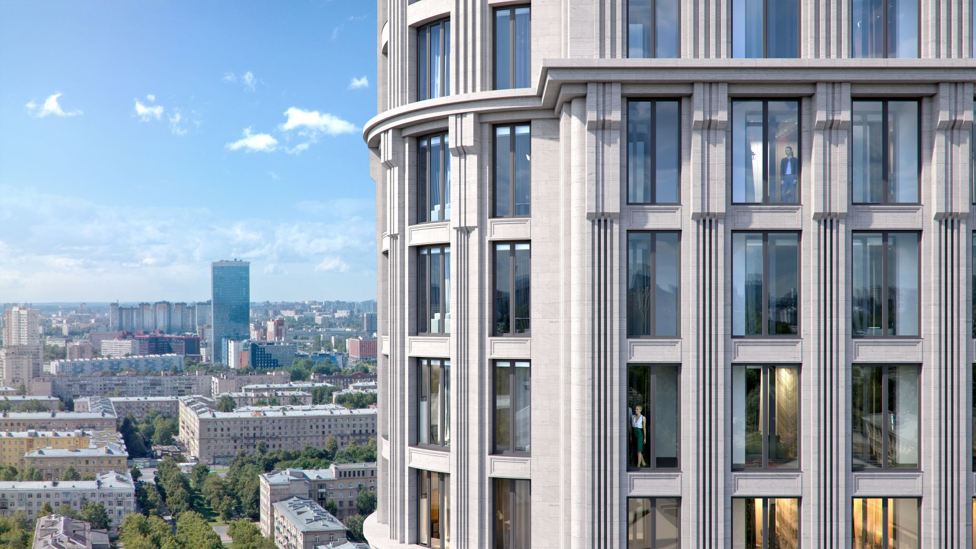 Проект представляет собой дом высотой в 25 этажей. Его облик создали в архитектурном бюро «НИиПИ Спецреставрация» с отсылкой к стилям сталинского ампира и ар-деко. Отличительной чертой здания является венчающий «карниз», который выполнен в виде волн.